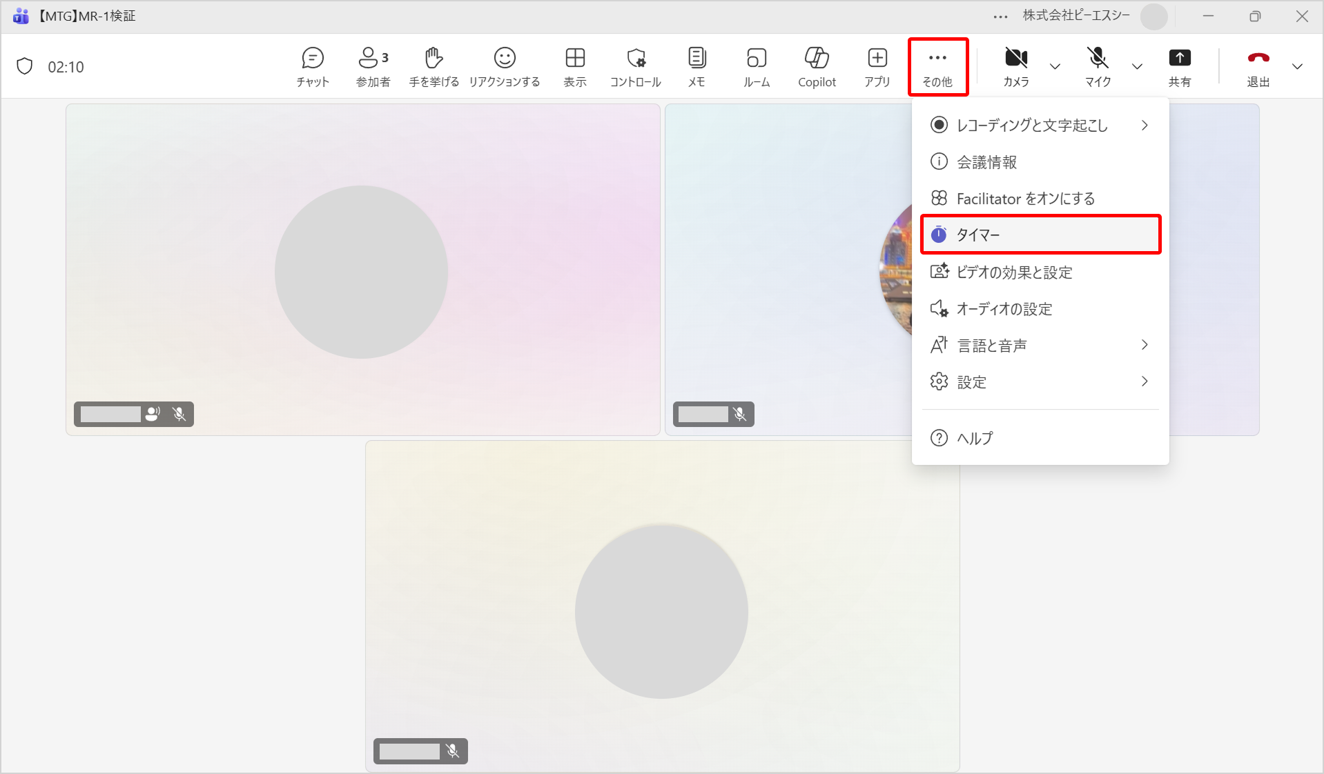Teams会議中にタイマーを設定し、時間管理をサポートする機能です。このタイマーは一人が設定すれば参加者全員で確認することが可能なので、議題ごとの時間配分やグループワークの管理に役立ち、会議の効率化やメリハリのある進行にもつながります。