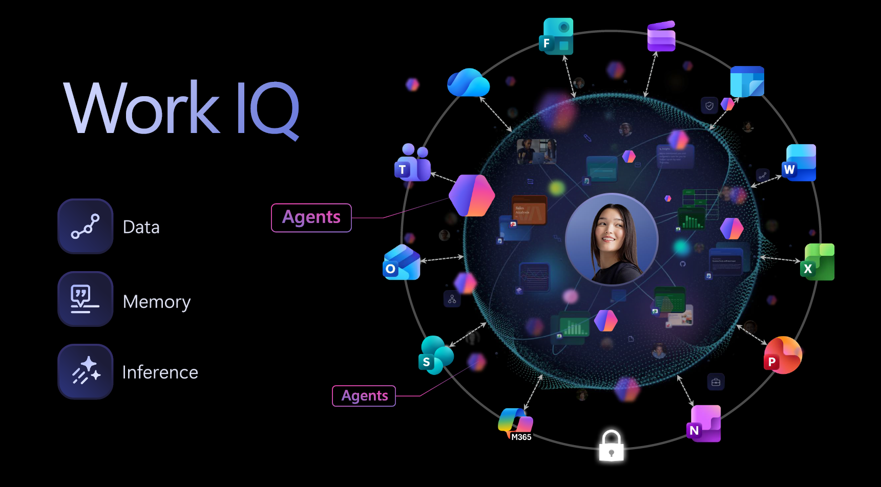 | Work IQ | 業務文脈・個人/組織の履歴を学習・推論。 ユーザーや組織ごとの業務履歴をもとに、状況に応じた最適な提案や支援を実現する。 |